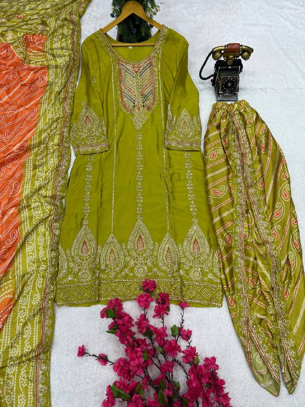 *Dupatta Fabric* :- Heavy Pure Chinon Silk Fabric with digital print with embroidery work Lace on border