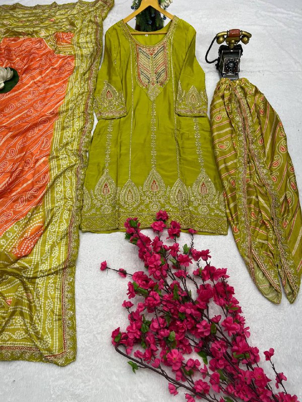 *Kurti Fabric* :- Heavy Pure Chinon Silk With silk inner (Fully stitched)